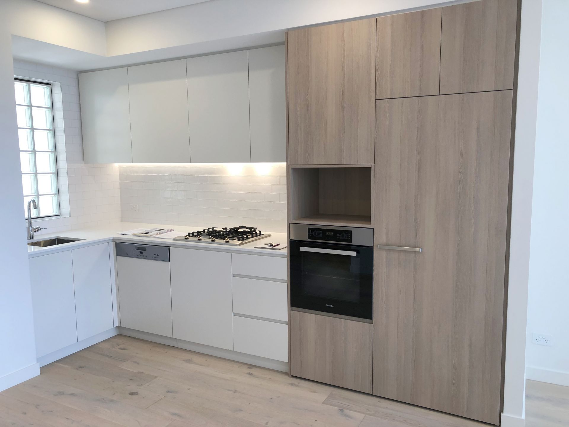 - Designer kitchen with stone bench tops, Miele appliances gas cooking & dishwasher