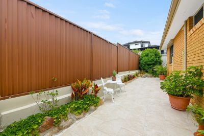 The spacious open-plan living and dining area flows seamlessly to a private, landscaped courtyard, creating an inviting space for entertaining or relaxed outdoor enjoyment. A modern, well-appointed kitchen offers ample storage, quality appliances and direct access to the internal laundry, enhancing both functionality and flow.